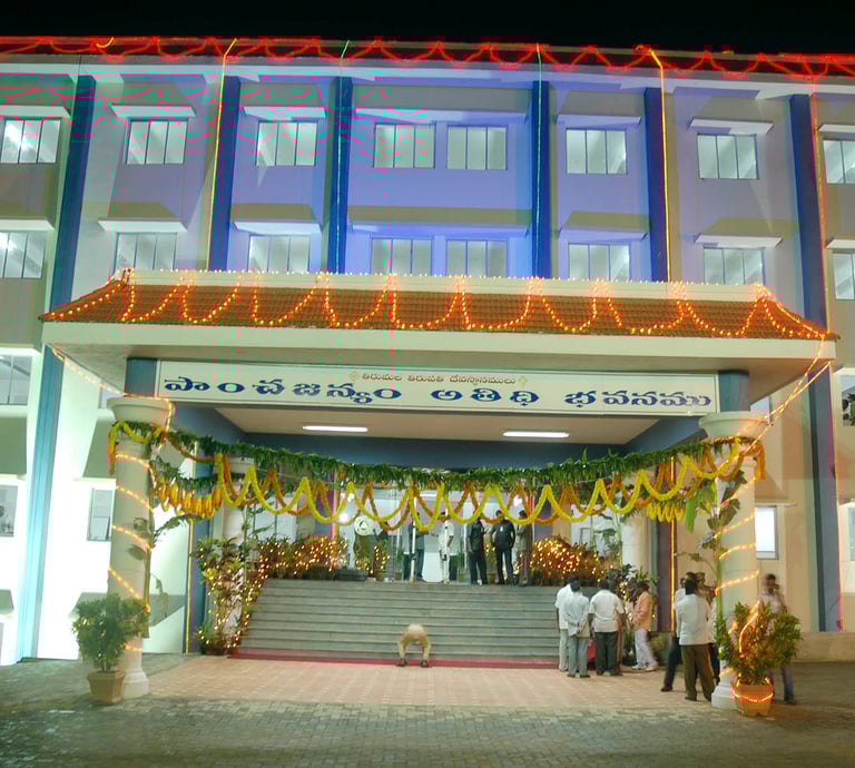 Welcome to Panchajanyam Guest House, your spiritual home away from home in the holy town of Tirumala. Situated just minutes away from the famous Sri Venkateswara Temple, our guest house is designed to provide pilgrims and travellers with a blend of comfort, cleanliness, and convenience.